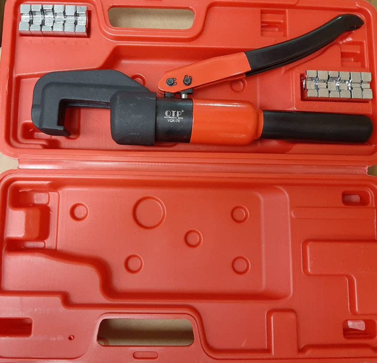 پرس کابلشو هیدرولیکی دستی YQK-70 برند OTP مناسب برای پرس انواع کابلشو از سایز 4 الی 70 می باشد. ویژگی خاص این دستگاه کوچک بودن آن است. این ویژگی این امکان را به نصاب کار و برق کار میدهد تا در هر موقعیتی، حتی در فضای محدود بین تابلوها امکان پرس کردن کابلشوهای کوچک را داشته باشد